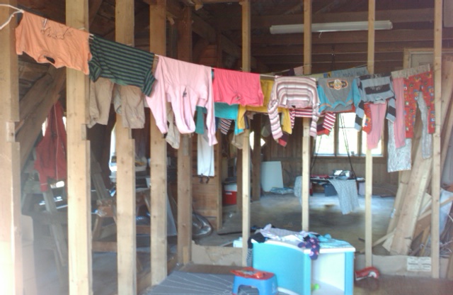 Syksyllä siirsin pyykit sisätiloihin: talon vintti on kylmää tilaa, mutta ei sinne sentään sada (ainakaan kaatamalla).