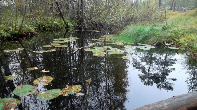 Kiito tyssäsi ensimmäiseen ylämäkeen, joka oli kivisellä ja juurisella metsäpolulla. Vauhdin hidastuttua myös hyttyset saivat meidät kiinni. Niitä ei pyörää juosten taluttamalla päässyt pakoon. Sitten alkoi ukkonen jyrähdellä, eikä aikaakaan kun jo satoi. Taukopaikalle ei onneksi ollut pitkä matka, ja kun pääsimme laavun suojiin, sadekin laantui.