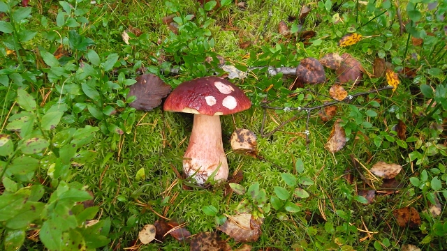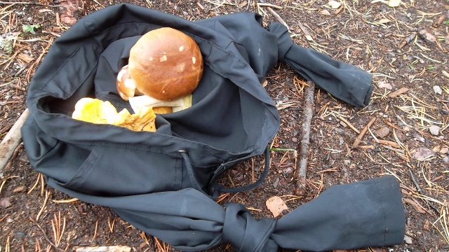 Metsänpohja oli puolukkaa punaisenaan, mutta me poimimme mukaan kanttarellit ja herkkutatit. Kävelylle kun oltiin lähdetty, niin ei ollut sienikoppaa saati muovipussia mukana – mutta olihan jalassa verkkareiden päällä kuorihousut.  Ei muuta kuin puntit solmuun ja poimimaan, toiseen lahkeeseen kanttarellit ja toiseen tatit.