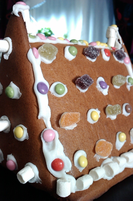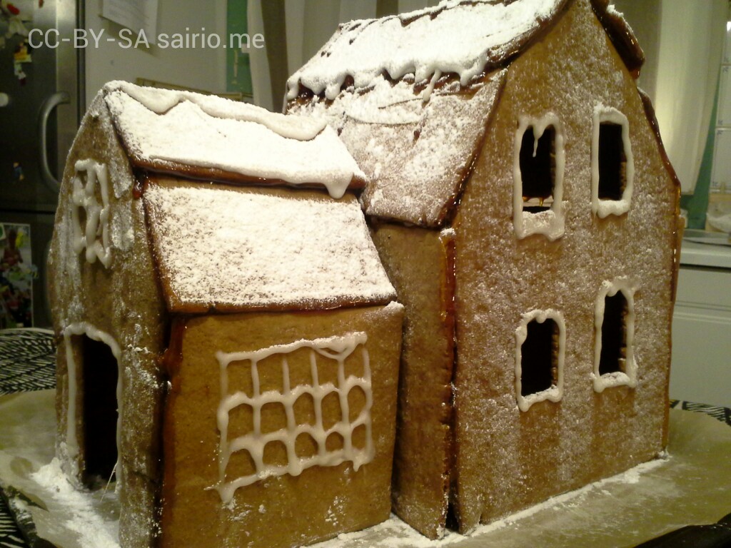 Lapsi löysi kaapista piparkakkutalopaketin, ja sehän piti saada rakenteille välittömästi maaliskuisena maanantaina.
