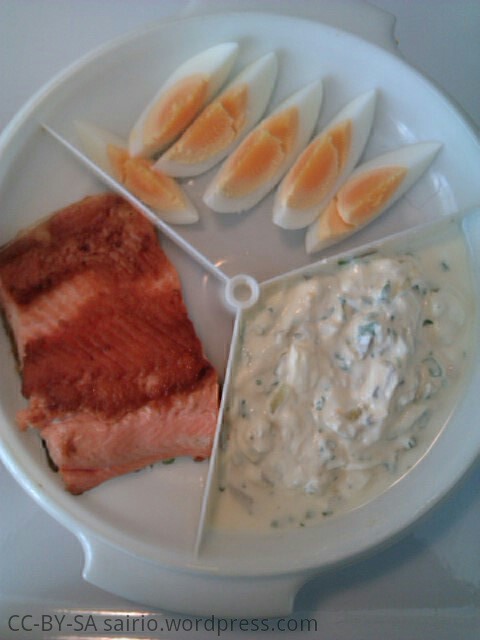 Olisin linkittänyt ohjeeseen, mutta sitä ei ollut Kodin kuvalehden kokkaussivuilla saatavilla. Munakkaan täytteessä oli sipulia, lehtikaalia, kylmäsavulohta ja sinappia. Varsinainen taikina tehtiin munista, maidosta ja juustoraasteesta, Mausteina suola ja pippuri (kun sitä muskottipähkinää ei sattunut olemaan). Munakasmassa tehtiin erikseen, samoin täyte. Jäähtynyt täyte kaadettiin munien sekaan ja koko massa voideltuun uunivuokaan. Munakasta paistettiin 200 asteessa 20 minuuttia.