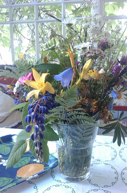 Täydellinen kesälomapäivä: aurinkoa kukonlaulusta lähtien, aamukahvit laiturilla, veneajelu kauppaan ja muuten vaan, kevyttä grillausta kolmeen otteeseen, uintimatka lämpimässä vedessä saaresta mökkirantaan, lempeät löylyt saunassa ja vilvoittavat vedet joka välissä.