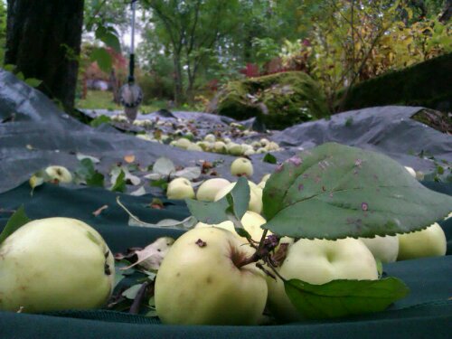 Se marjapuuro olisi muuten ollut leseistä, omenoista ja marjoista keitettyä puuroa. Mutta kun oli aamu, niin oikaisin vähän ja tein vain omenaisen kaurapuuron: vettä, suikaloitua omenaa, pikakaurahiutaleita ja sokeria. Omenat valitsin marjojen sijaan siksi, että kellarin talviomenat alkavat olla niin nahistuneita, että niitä ei juuri muuten kuin kypsennettyinä syö. Hyvää tuli.