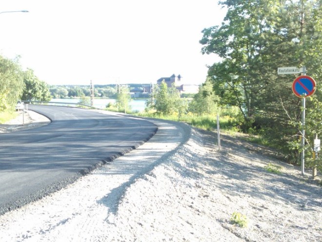 Tietä on nostettu ja se on asfaltoitu. Lisäksi sivuun on rakennettu pyörätie.