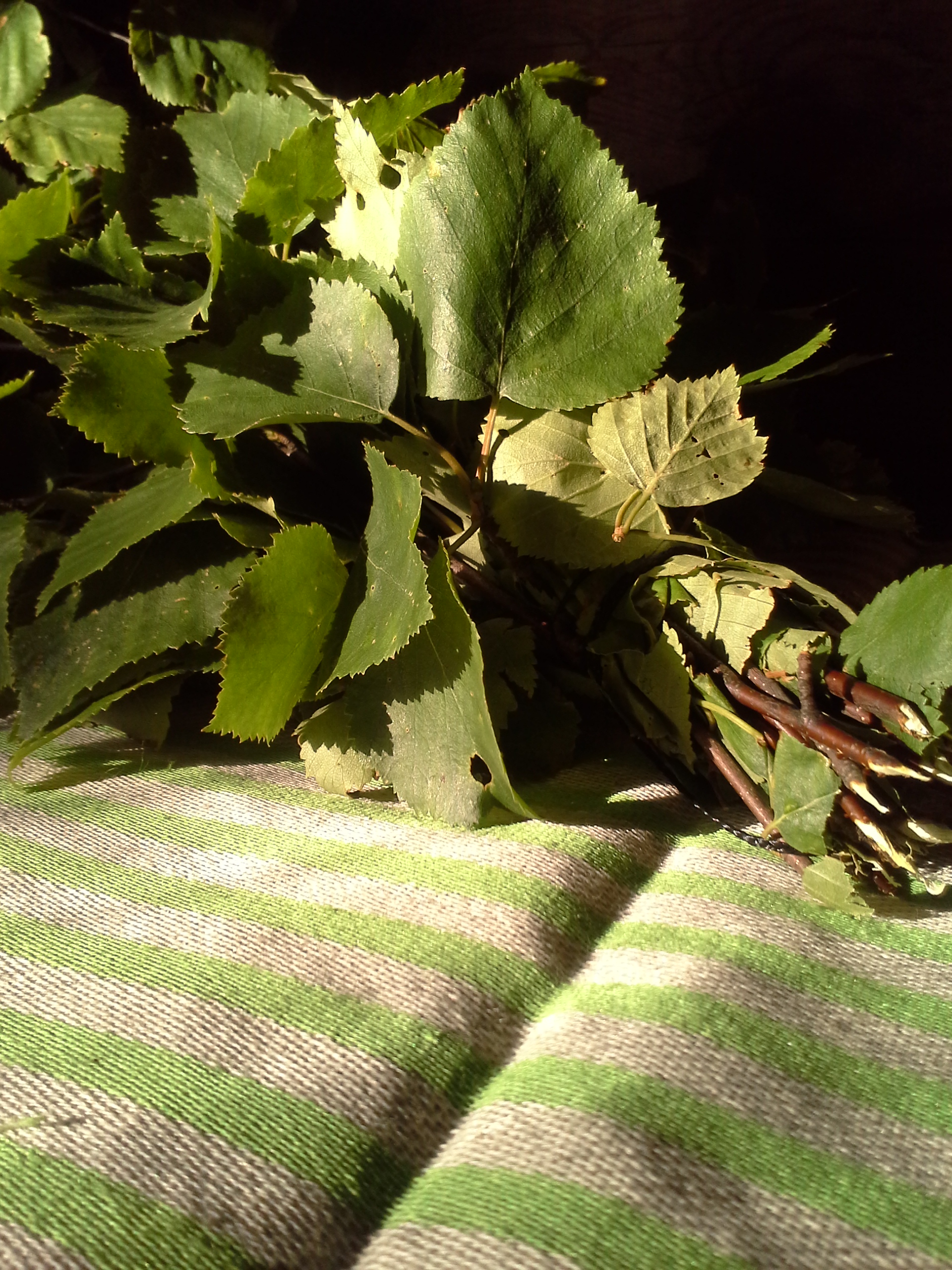 Sauna ja vihta ja pellavainen laudeliina. Onnea on sellainen päivä, jolloin on aamusauna ja iltasauna. Sateella voi olla myös päiväsauna.